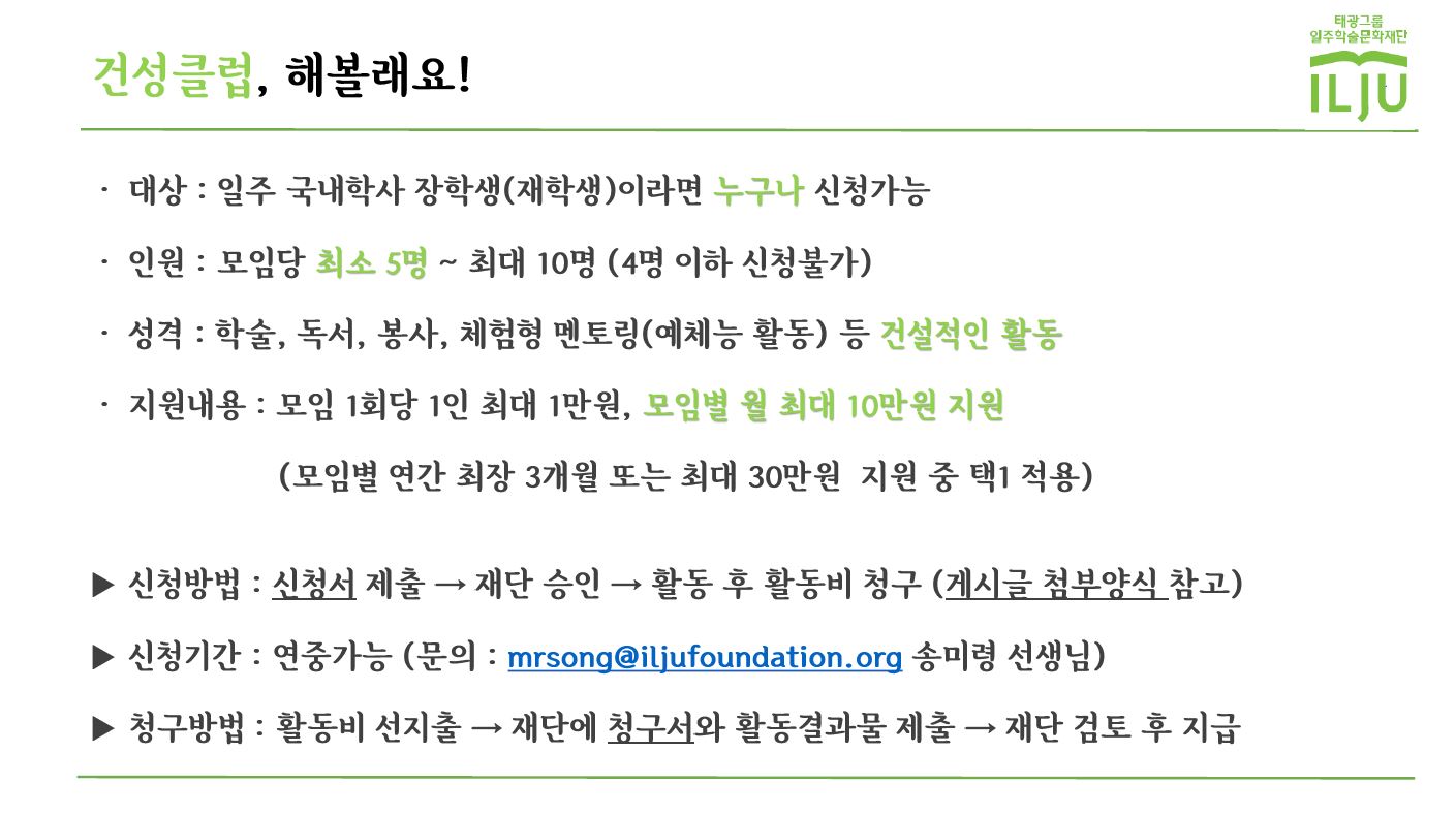 국내학사 장학생 소모임 <건성클럽>에 지원하세요!