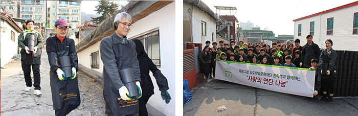 ▲학생들과 함께한 사랑의 연탄나눔 행사에서